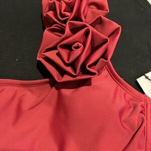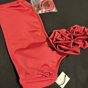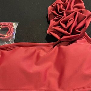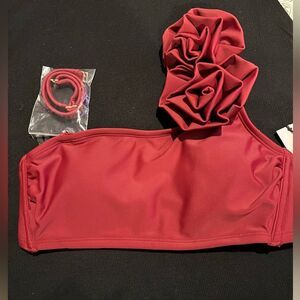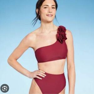 Made from soft fabric with spandex and a full lining, this one-shoulder bandeau-style bikini top provides flexible comfort in and out of the water. Removable pads