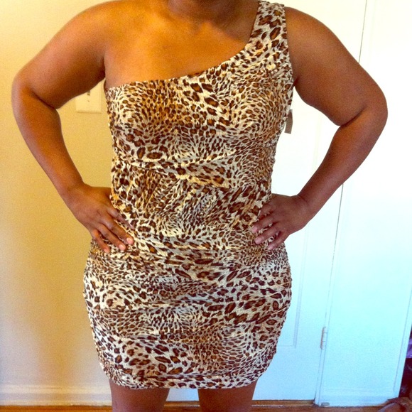 One shoulder leopard party dress