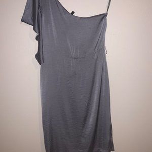 Bcbgmaxazria size xxs grey/silver one shoulder dress