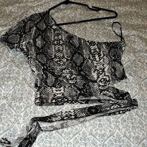 One shoulder snakeskin wrap top crop top size L Very cute wrap around torso crop top