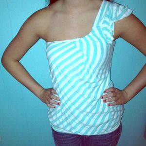 Size small. Charlotte Russe. Light turquoise and white with ruffles on the shoulder strap and a banded bottom. Only been worn a few times. No damages.