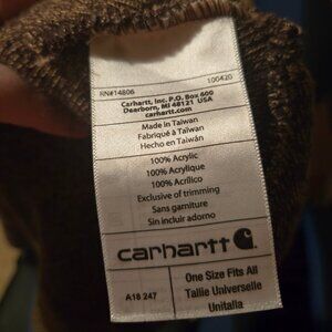 One size fits all carhartt beanie. Photos show outside and inside of beanie + tag. Brown/heather-y. Ask if you have questions!