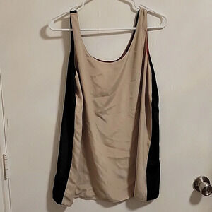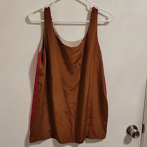 Get four different looks with one top!! This tank has a different color on each side, Black, Brown, Red and Tan wear with jacket or cardigan and choose your color. The tag is located on the side, near the armpit so it's easily hidden when wearing a jacket with this tank.
