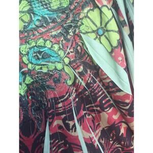 One world Womens Top Size Medium Burnout Fairy Grunge Green Brown Lace Flower