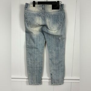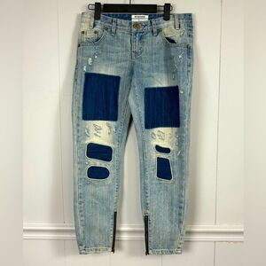 One x One Teaspoon Denim Distressed Patch Work Straight Leg Blue Jeans Size 26