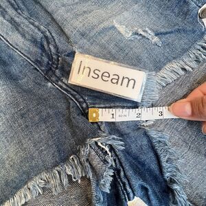 In great pre-owned condition. Please see photos for measurements, fabric content and condition. -Denim-Frayed-Cuffed-High Waisted-Distressed