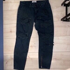 One x One Teaspoon Jeans Black Distressed Skinny Denim Women’s Size 27 Zipper