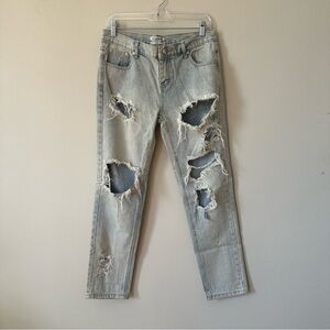 Excellent condition light wash denim jeans. Distressed. Baggie boyfriend fit.