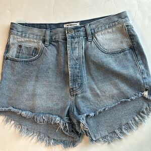 One x One Teaspoon Outlaws Distressed High Rise Button Fly Blue Storm Size 28
