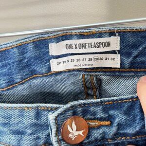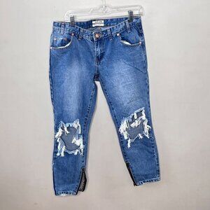 One x Oneteaspon Zippered Hem Distressed Denim Jeans- Size 29