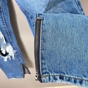One x Oneteaspon Zippered Hem Distressed Denim Jeans- Size 29. Open Knees with zippered hems. Low-rise, cropped.
