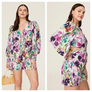 One33 Social Floral Romper Cutout Long Sleeve V Neck Chiffon Pink Purple 2