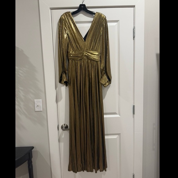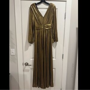 Shine in this elegant gold long sleeve dress. Perfect for any special occasion.