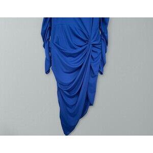 Retail $295 royal blue, square neck asymmetrical ruched dress