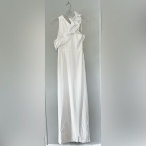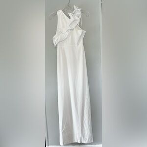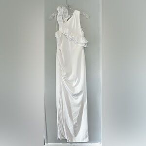 One33 Social White Ruffle One-Shoulder Gown with Front Slit Size 4