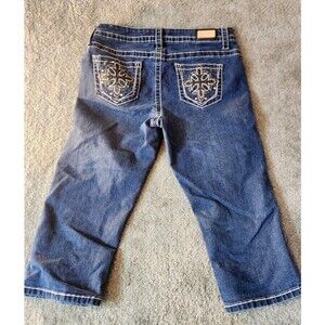 One5One Womens Denim Capri Size 6 Blue Embroidered Pockets Embellished Design.