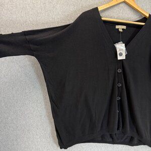 OneA Womens Black Button-Up Cardigan Sweater Button Sleeve Boxy Size Medium NWT