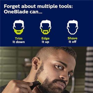 Trim, edge and shave any length of hair. Designed to cut hair, not skin. Philips Norelco OneBlade Pro is a revolutionary hybrid styler that can trim, shave and create clean lines and edges, on any length of hair. Forget about using multiple steps and tools. OneBlade does it all. Philips Norelco OneBlade has a revolutionary technology designed for facial styling and body grooming. It can trim, edge and shave any length of hair. Its dual protection system – a glide coating combined with rounded tips – makes shaving easier and comfortable.