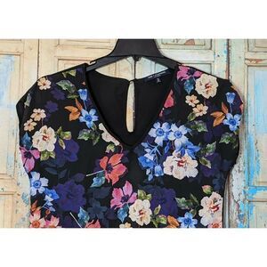 One Clothing Womens Size Small Floral Top Button Closure Short Sleeve V Neck