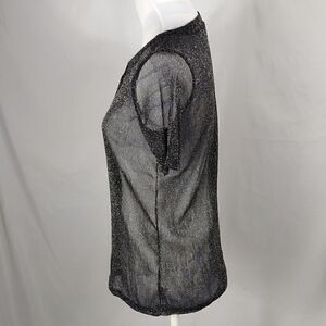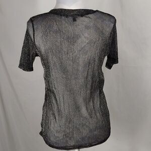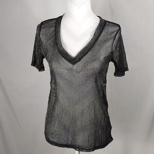 This black and metallic silver One Clothing Los Angeles sheer v-neck short sleeve tee is a size Small with a pit to pit measuring 20". 100% nylon and hand washable. Pre-owned and in excellent condition. All offers welcome.