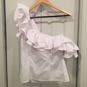 Do+Be white ruffled off/one the shoulder Blouse. NEVER WORN!