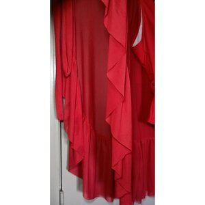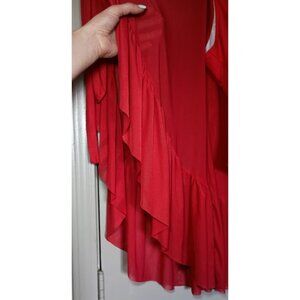 Absolutely gorgeous red, deep-v/backless bathing suit with matching sarong.