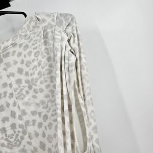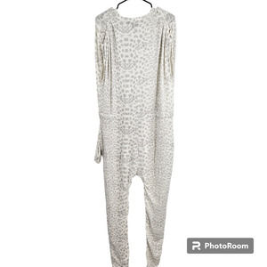 One Piece Jumpsuit Cream Gray Leopard Sleeveless V-Neck Drawstring Waist Size XS