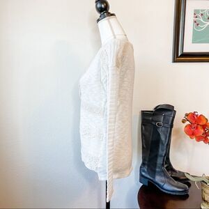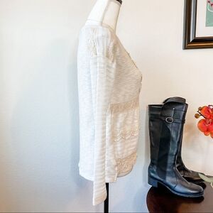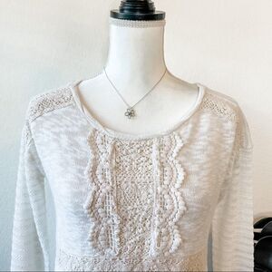 Super cute boho style long sleeve ivory sweater with lace details. Excellent pre-owned condition!