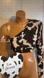 Stylish one-shoulder top featuring a bold black and white cow print pattern. Perfect for a chic and modern look.