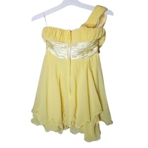 This charming lady dress features a delightful yellow hue, perfect for special occasions. The elegant design is complemented by a beautiful rhinestone accent, adding a touch of sophistication.