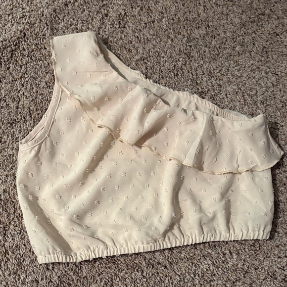 Elevate your style with this elegant one-shoulder cream top. Featuring a delicate ruffle design, it's perfect for any occasion.