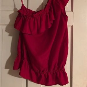 One-Shoulder Limited Red Silkish-type shirt. Gorgeous on. Medium size
