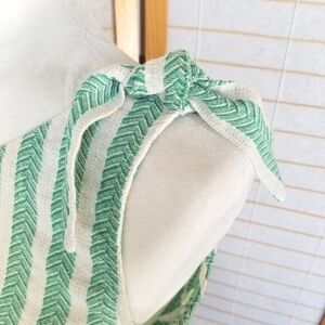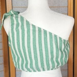 Quzu One-Shoulder Crop Top Linen Green Stripe Size Small
