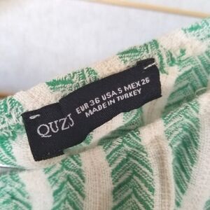 One-Shoulder Linen Blend Green Crop Top Size Small Quzu Stripes