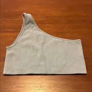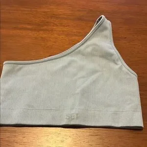 Stylish one-shoulder ribbed Set Active sports bra in light blue. Perfect for casual wear.