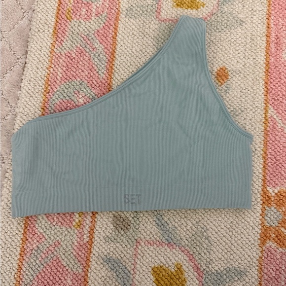 One-Shoulder Ribbed Set Active bra in Light Blue