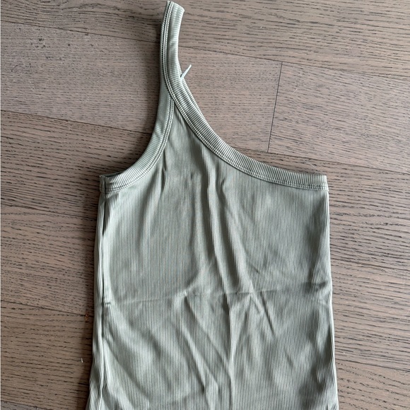Stylish one-shoulder ribbed tank top in light green. Perfect for casual wear. Very smooth silky material