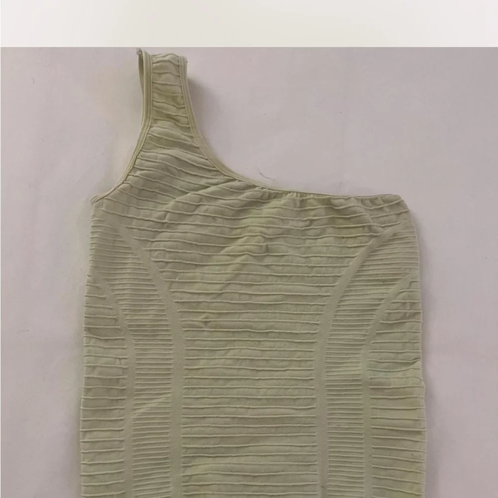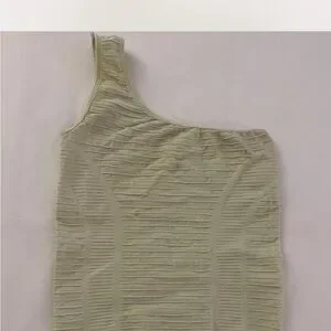Stylish one-shoulder ribbed top in light green. Perfect for casual outings.