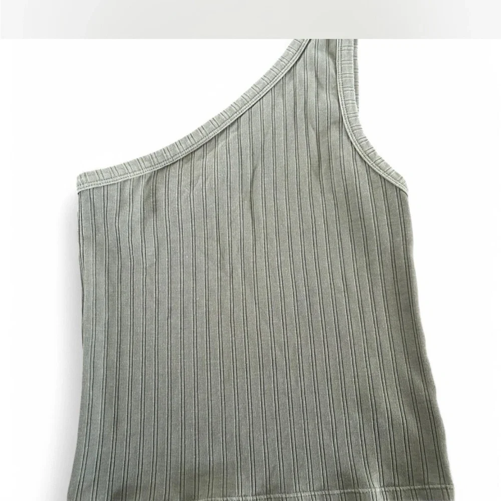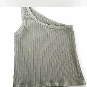 Elevate your style with this chic one-shoulder ribbed top. Perfect for any occasion, this green top adds a touch of elegance to your wardrobe.