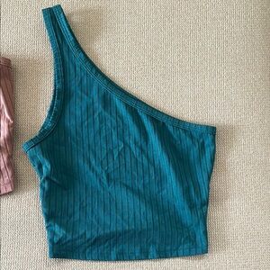 One-Shoulder Ribbed Women Top Set