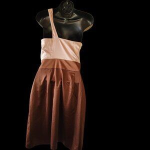 One-Shoulder Satin Midi Dress With Ruched Bodice In Blush Pink & Brown