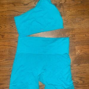 Chic one-shoulder bandeau. Ribbed texture for style. Ideal for casual wear. Selling as set! first photo is not exact set, just showing so wear-inspo!