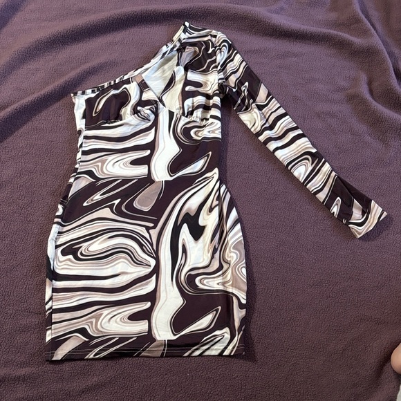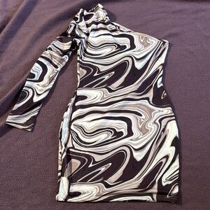 One-Shoulder Swirl Pattern Dress
