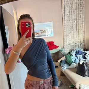 stylish one-shoulder blue/gray top; worn twice; Jaya top - lovers and friends