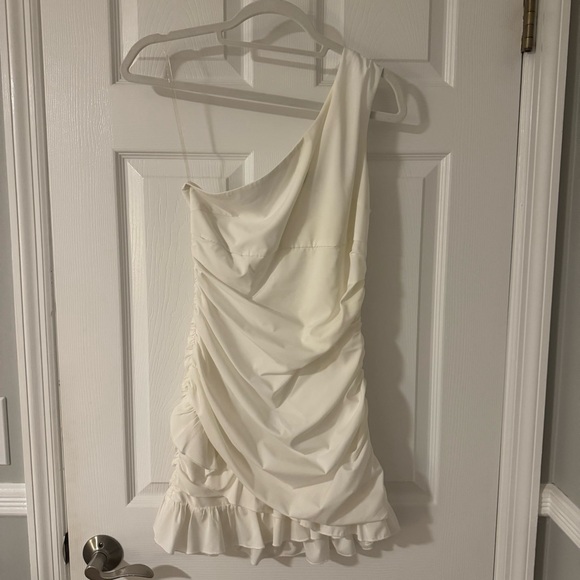 Beautiful white one-shoulder dress with ruffles. Minimally worn and in great condition! Super cute and great for a summer event or cocktail attire!