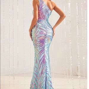 Stunning, multi-color, one-shoulder, mermaid dress!!