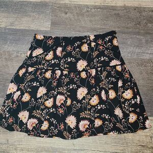 Floral skirt from '1 State' in a size 6. Has an elastic band at waistline and side zipper. Brand is sold at Bloomingdales.