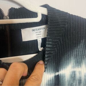 One Teaspoon Black/Blue Tie Dyed Ribbed Long Sleeve Sweatshirt NWOT MEDIUM