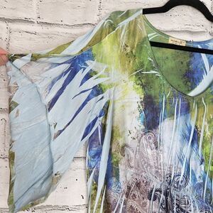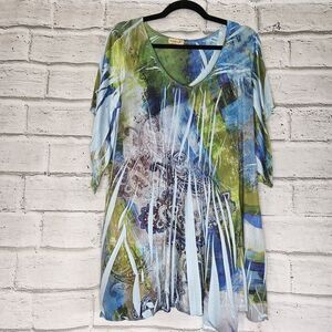 One World 1X Tunic Womans Multicolor Stripe Short Sleeves Stretch Pullover.