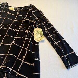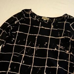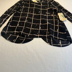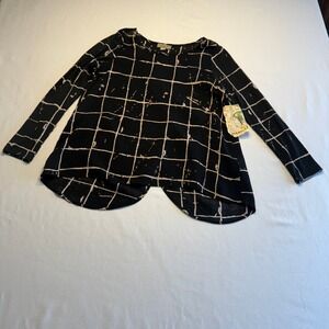 OneWorld Black Grid Print Hi-Low Long Sleeve Top | PM | NWT
